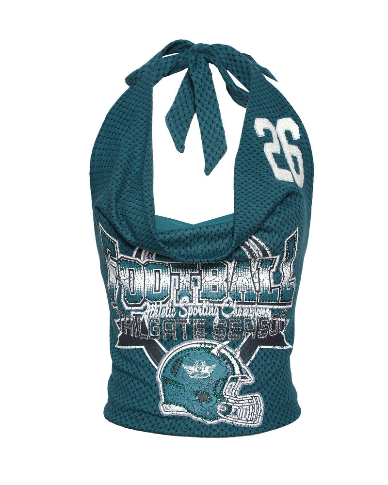 The A Little Birdie Told Me Halter Topreimagines classic sports jersey vibes with a bold Boys Lie twist. Featuring a tie-back fit, varsity-style graphics, and sparkling details, it's perfect for tailgates and beyond