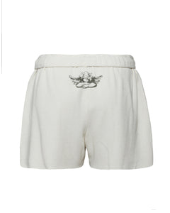 Our classic thermal shorts get a flirty upgrade. Made in ivory white with a soft, breathable waffle texture. The rhinestone cherub sparkles up front while the Boys Lie graphic on the front is sealed with a red kiss.